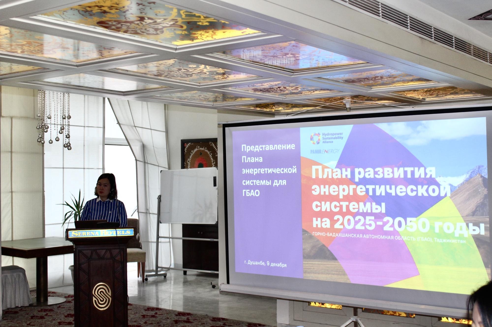 09-уми декабри соли 2025, шаҳри Душанбе. – Вазири энергетика ва захираҳои оби Ҷумҳурии Тоҷикистон Далер Ҷумъа дар маросими муаррифии лоиҳаи «Стратегияи рушди соҳаи барқи Вилояти Мухтори Кӯҳистони Бадахшон то соли 2050», ки меҳмонхонаи «Dushanbe Serena» баргузор гардид, иштирок намуд.
