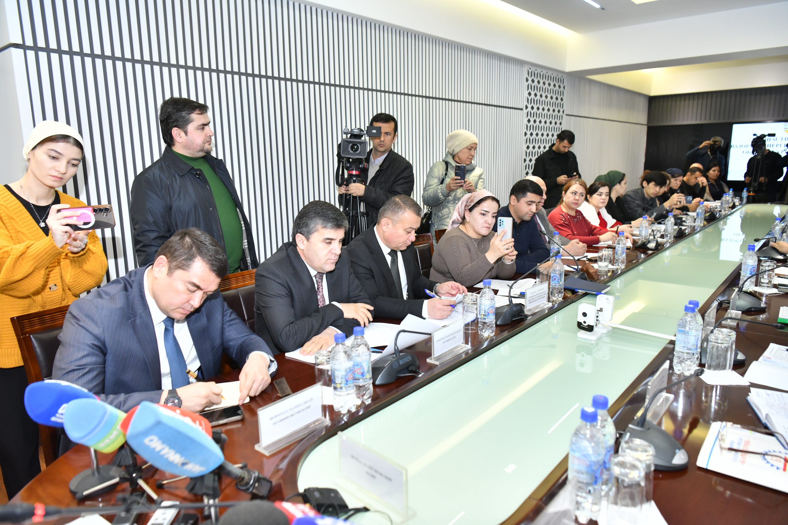 Дар нишасти матбуотӣ роҳбарияти Вазорат, намояндаи Дастгоҳи иҷроияи Президенти Ҷумҳурии Тоҷикистон, инчунин, доираи васеи намояндагони васоити ахбори омма аз шабакаҳои телевизионии «Тоҷикистон», «Сафина», «Ҷаҳоннамо», «Баҳористон», «Синамо», «Сайёҳӣ ва ҳунарҳои мардумӣ», «МИР24», АМИТ «Ховар», агентиҳои иттилоотии «Азия Плюс», «Рейтерс», «ТАСС», «Интерфакс», «Спутник», «Наво», «Авеста», рӯзномаю маҷаллаҳои «Ҷумҳурият», «Садои Мардум», «Халқ Овозӣ», «Бонувони Тоҷикистон», «Ҷавонони Тоҷикистон», «Дайджест пресс», «Время и денги», «Время», «Илм ва ҳаёт», «Навиди варзиш», «Ба қуллаҳои дониш», радиоҳои «Тоҷикистон», «Садои Душанбе», «Ховар», «Овози Тоҷик», «Фарҳанг», «Радиои бурунмарзӣ», «Озодӣ», «ZET FM» ва сомонаҳои «radiotoj.tj», «Oila.tj», «Dialog.tj» ва рӯзноманигорони мустақил ҳузур доштанд.