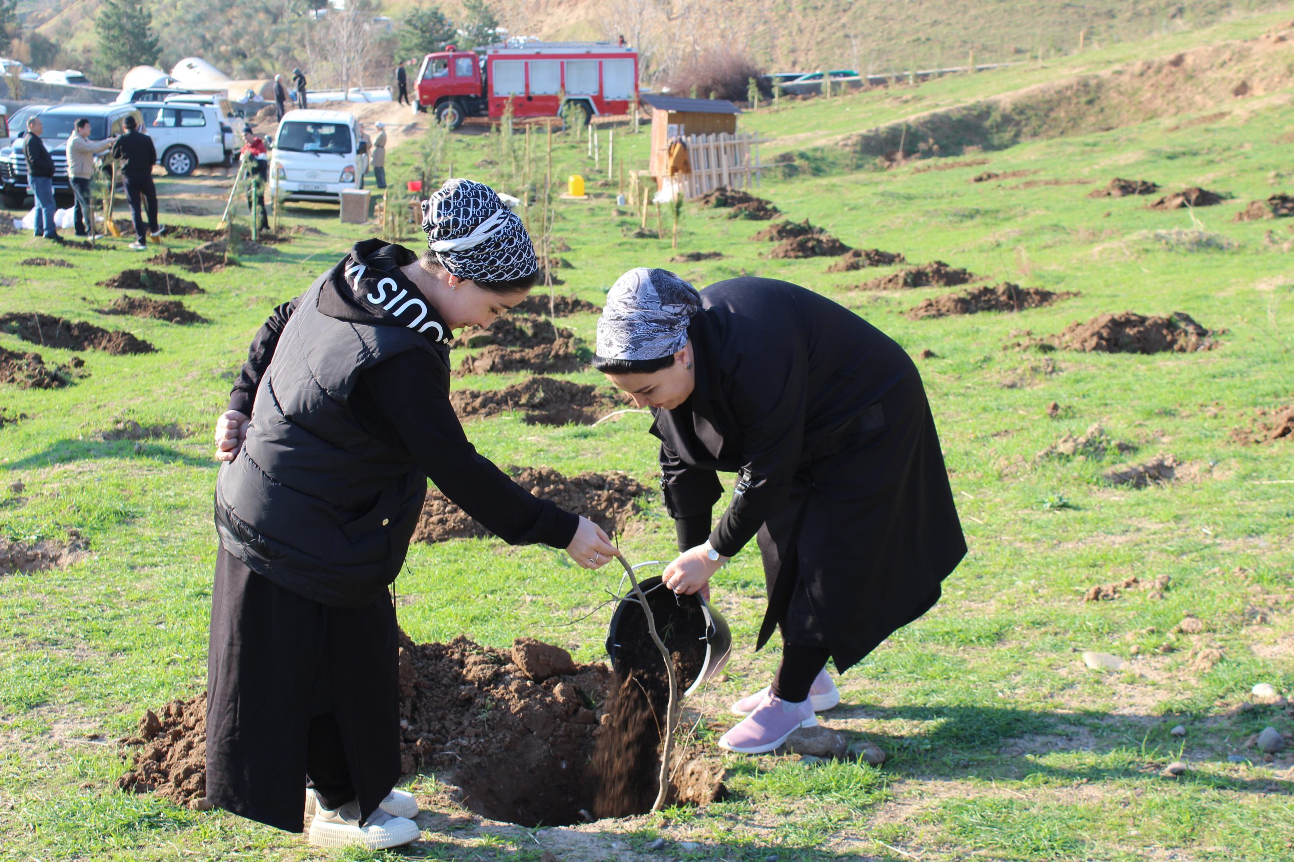 Дар ин рӯз 1500 бех ниҳолҳои мевадиҳанда, аз қабили себ, нок, писта, бодом, олуча шинонида шуд.
