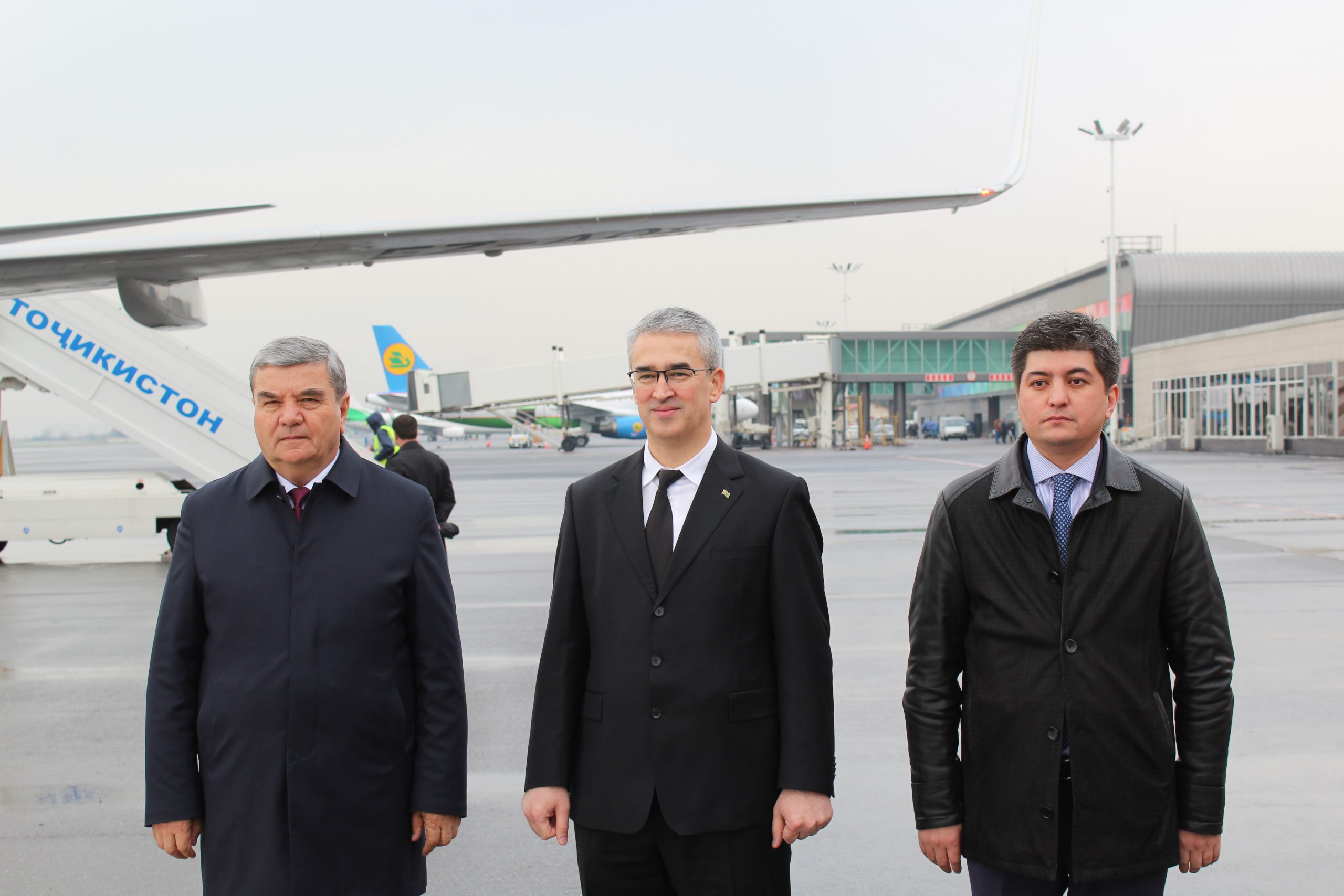 Официальную делегацию Туркменистана в Международном аэропорту Душанбе тепло и дружелюбно встретили заместитель Премьер-министра Республики Таджикистан Зиёзода Сулаймон и другие официальные лица.
